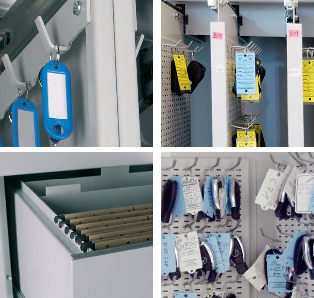 Gerade bei Mehrmarken Autohäusern eignen sich die Lochwände. Je nach Bedarf und technischer Machbarkeit können so die Tresortüre, Seitenwände und die Tresorrückwand damit ausgestattet werden. Durch das Raster können Sie so individuell die Haken im Tresor setzen und auch wieder verstellen. Auch in der Wahl der Hakenlänge können Sie verschiedene Längen sich aussuchen, speziell wenn Sie mehrere Schlüssel für ein Fahrzeug ablegen möchten. Sprechen Sie uns gerne an.